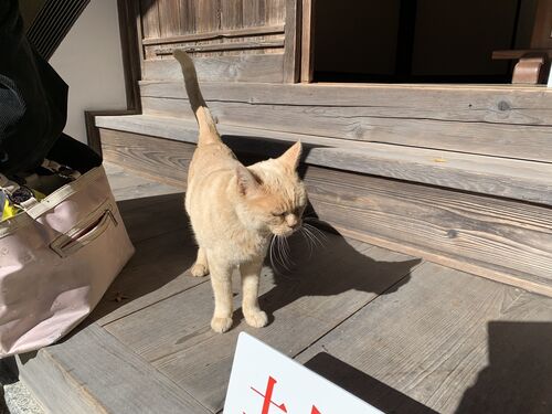 久しぶりの寺猫 【百済寺にて】 【最後に】 【追記】 【百済寺にて】 百済寺を参拝して、わたしが御朱印を頂戴しにいっている間に、家内は寺猫を見つけて可愛がっていました。 境内の庫裏(?)の縁側に茶柄のキジ猫が日向ぼっこをしていました。体型的には…